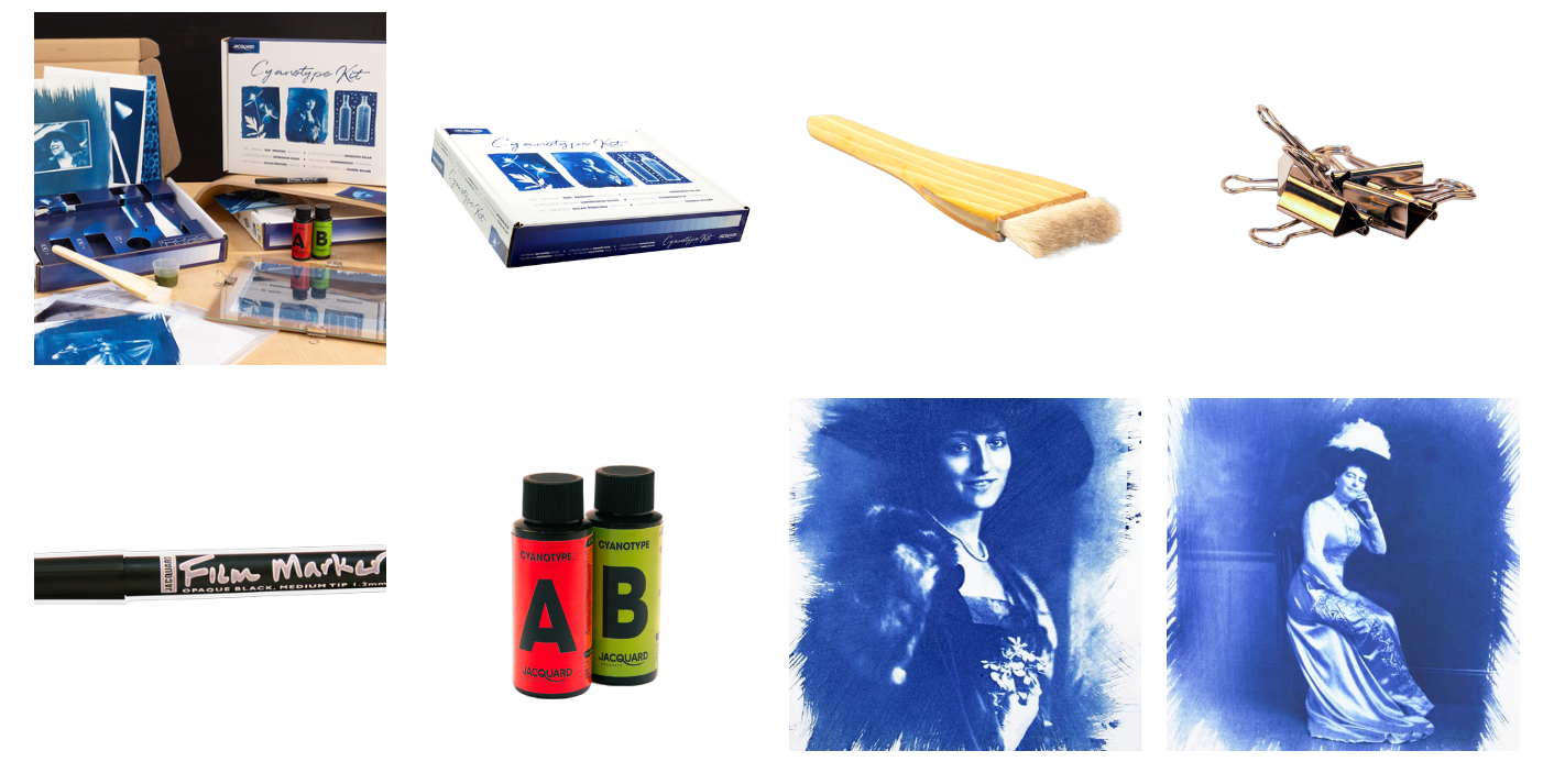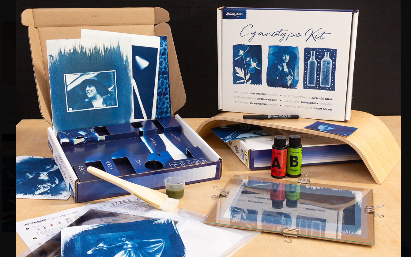 Sada Jacquard's Cyanotype Kit činí tisk pomocí slunce velmi snadným a obsahuje vše, co potřebujete, abyste mohli začít. Chemie je předem odměřena ve světlo-nepropustných černých lahvičkách. Jednoduše naplňte každou lahvičku vodou, abyste vytvořili zásobní roztoky A a B, a poté je smíchejte ve stejných poměrech, abyste vytvořili senzibilizátor kyanotypie. Natřete přiložený papír Hahnemühle Platinum Rag Fine Art Paper senzibilizátorem a po zaschnutí vytvořte tisky vystavením slunečnímu světlu nebo UV záření (10–20 minut, v závislosti na podmínkách), pomocí přiloženého skleněného rámečku a vašich dekorových předmětů nebo filmového negativu. Po expozici se výtisky opláchnou ve studené vodě a nechají se uschnout. Sada je dodávána s dostatečným množstvím materiálu pro vytvoření alespoň 12 (21,59 x 27,94 cm) výtisků.